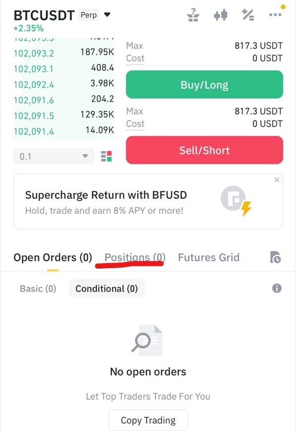 - 롱 포지션: 가격이 10만 USDT를 돌파할 가능성을 대비해 2 BTC 롱 포지션을 개설.